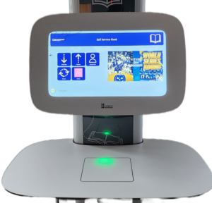 Our LibDeco self check kiosk is specifically designed with special attention being paid to appearance; the design is light, slim, and elegant.  All hardware is integrated into the furniture, including the large 22” touchscreen, printer and RFID antenna.
