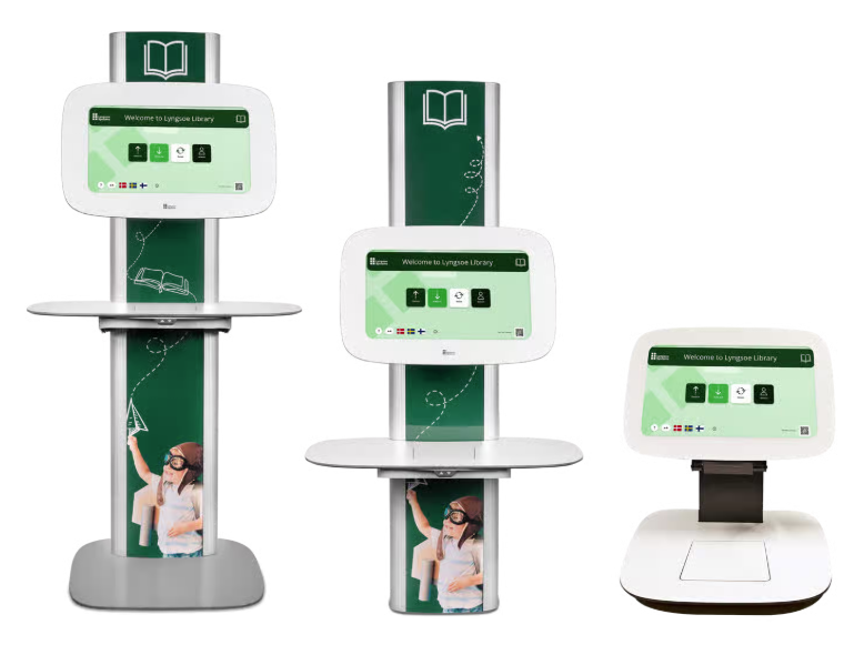 The design places emphasis on usability and ergonomics for users, as well as maintainability and ease of service for the library staff.  It is Scandinavian-inspired and incorporates curves into the counter and display.  It comes in several models:  free-standing fixed height, free-standing adjustable height, wall mount and table top.